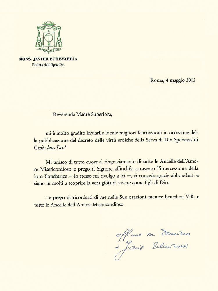 Lettera Apostolica in forma di “Motu proprio” Ad charisma ... Jul 14, 2022 · Considerando che le insegne pontificali sono riservate agli insigniti dell’ordine episcopale, al Prelato dell’Opus Dei si concede, in ragione dell’ufficio, l’uso del titolo di Protonotario Apostolico soprannumerario con il titolo di Reverendo Monsignore e pertanto potrà usare le insegne corrispondenti a questo titolo. Art. 6. OPUS DEI: Lettera del Prelato (ottobre 2008) Nella sua lettera di ottobre, il Prelato dell'Opus Dei afferma che solo con l'aiuto di Dio possiamo essere buoni strumenti nelle Sue mani. Carissimi: Gesù mi protegga le mie figlie e i miei figli! L'ottantesimo anniversario della fondazione dell'Opus Dei che cade domani, festa dei Santi Angeli Custodi, ci invita a elevare al Cielo